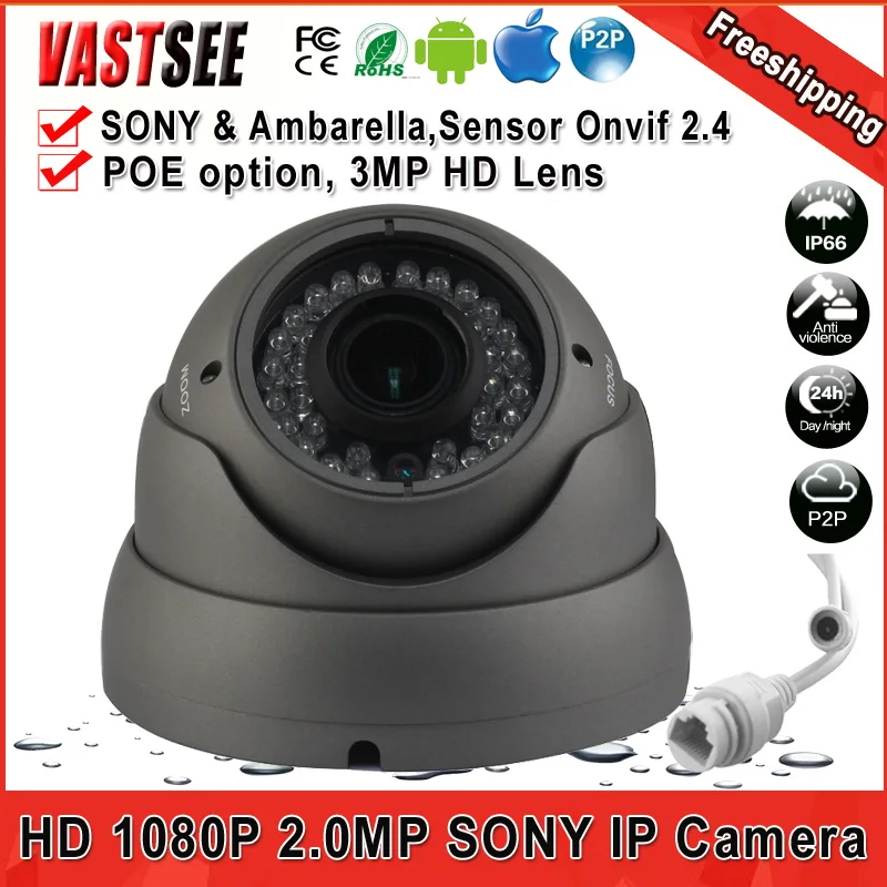 Main Features : 2MP IP camera full HD 1080P POE onvif P2P SONY IMX322 Sensor Ambarella indoor room dome 2.8-12mm varifocal video surveillance