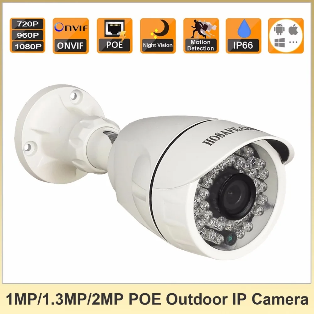 Main Features : HOSAFE 720P/960P/1080P ONVIF POE Outdoor IP Camera Waterproof Motion Detection and Email Alert Free Shipping