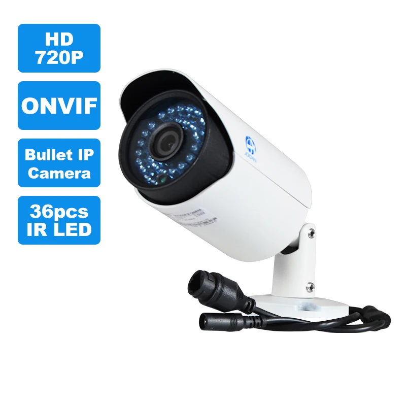 Main Features : JOOAN 1.0MP Outdoor Waterproof ONVIF POE Bullet IP Camera P2P, Android IOS phone remote monitoring HD Lens 36pcs IR Leds