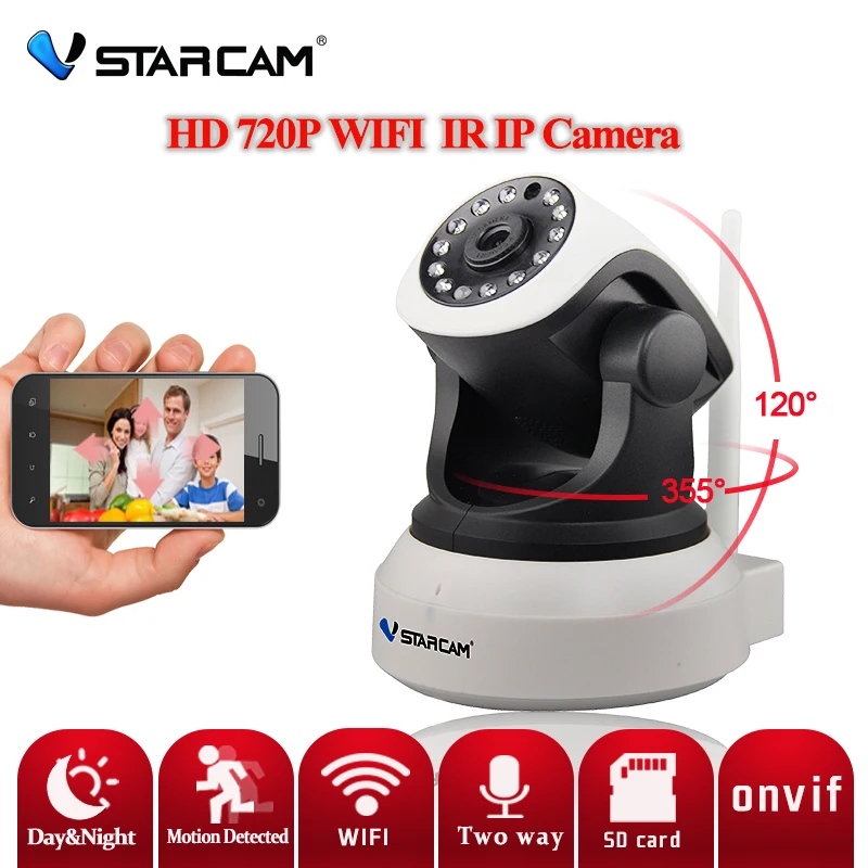Main Features : Vstarcam Onvif 2.0 720P Wireless Wifi IP Camera Security CCTV Camera HD Indoor Pan/Tilt IR CUT Night Vision Support 64G SD Card