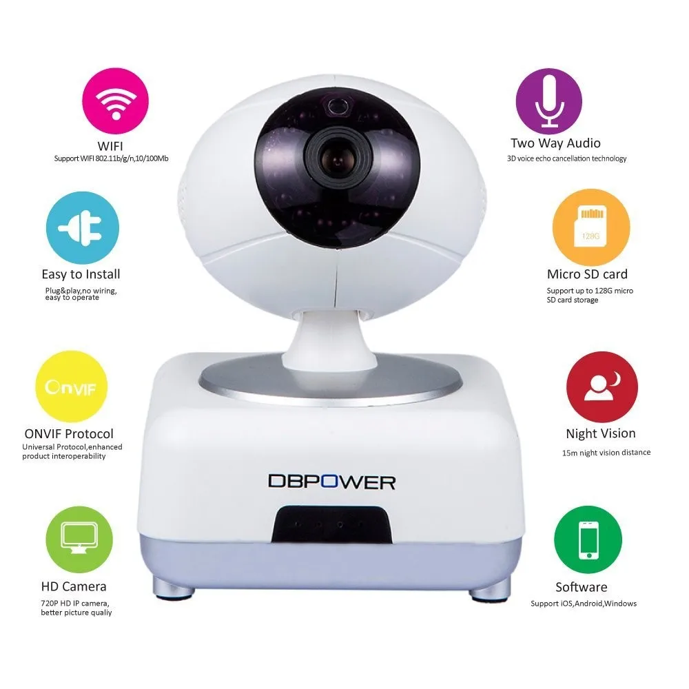 Main Features : 720P IP Camera Wireless Security Cameras Wifi Baby Monitors 2 Way Audio Motion Detection Built-in Microphone DDNS P2P